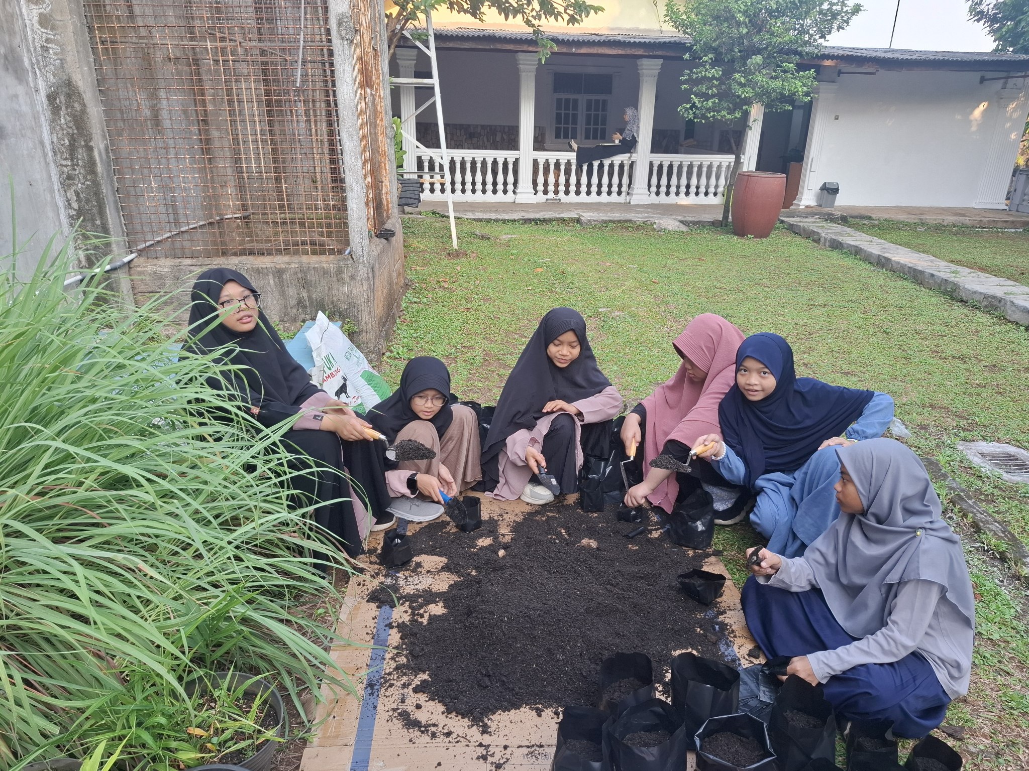 Tataplah sejenak foto di atas. Di tengah hamparan rumput dan di bawah naungan pepohonan, ananda-ananda kita sedang duduk merapat, berinteraksi langsung dengan tanah. Pernahkah terbayang bahwa sebidang tanah di halaman sekolah bisa menjadi laboratorium adab yang paling berharga?