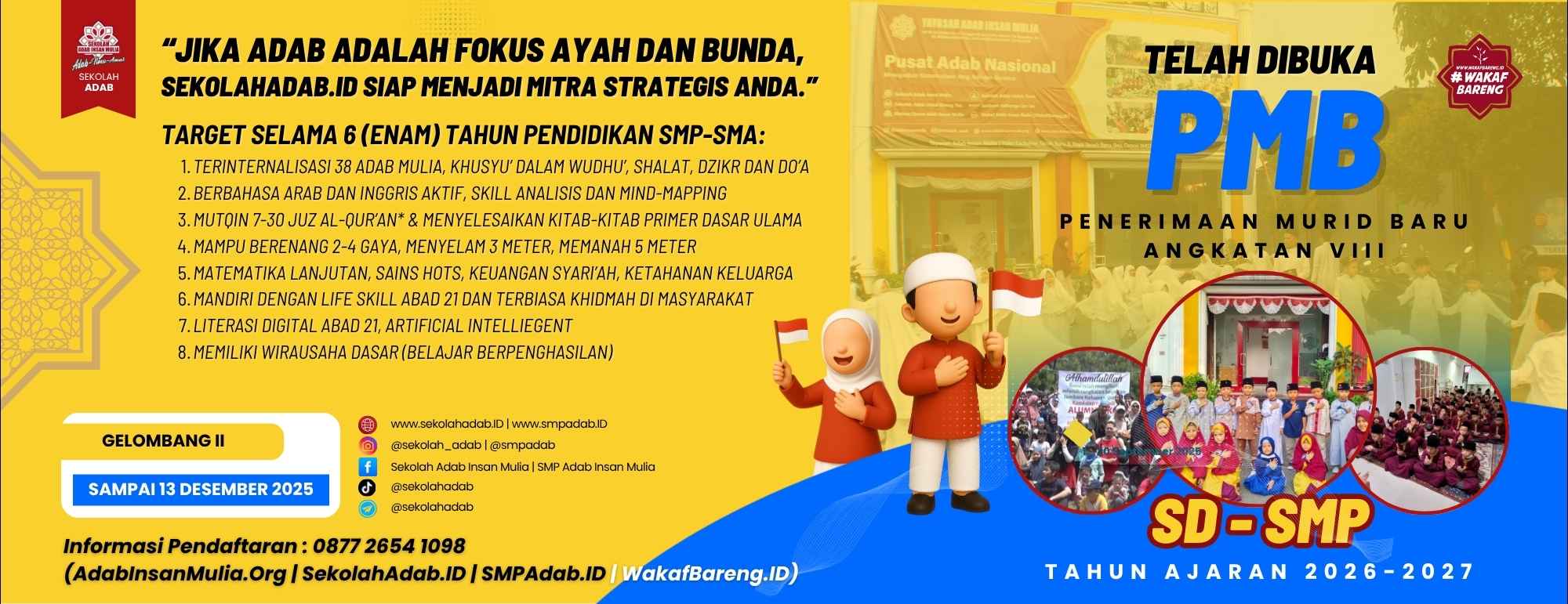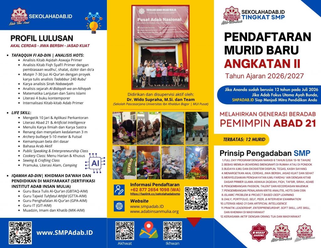 Berikut ini brosur Angkatan II SMPAdab.ID T.A. 2026/2027.